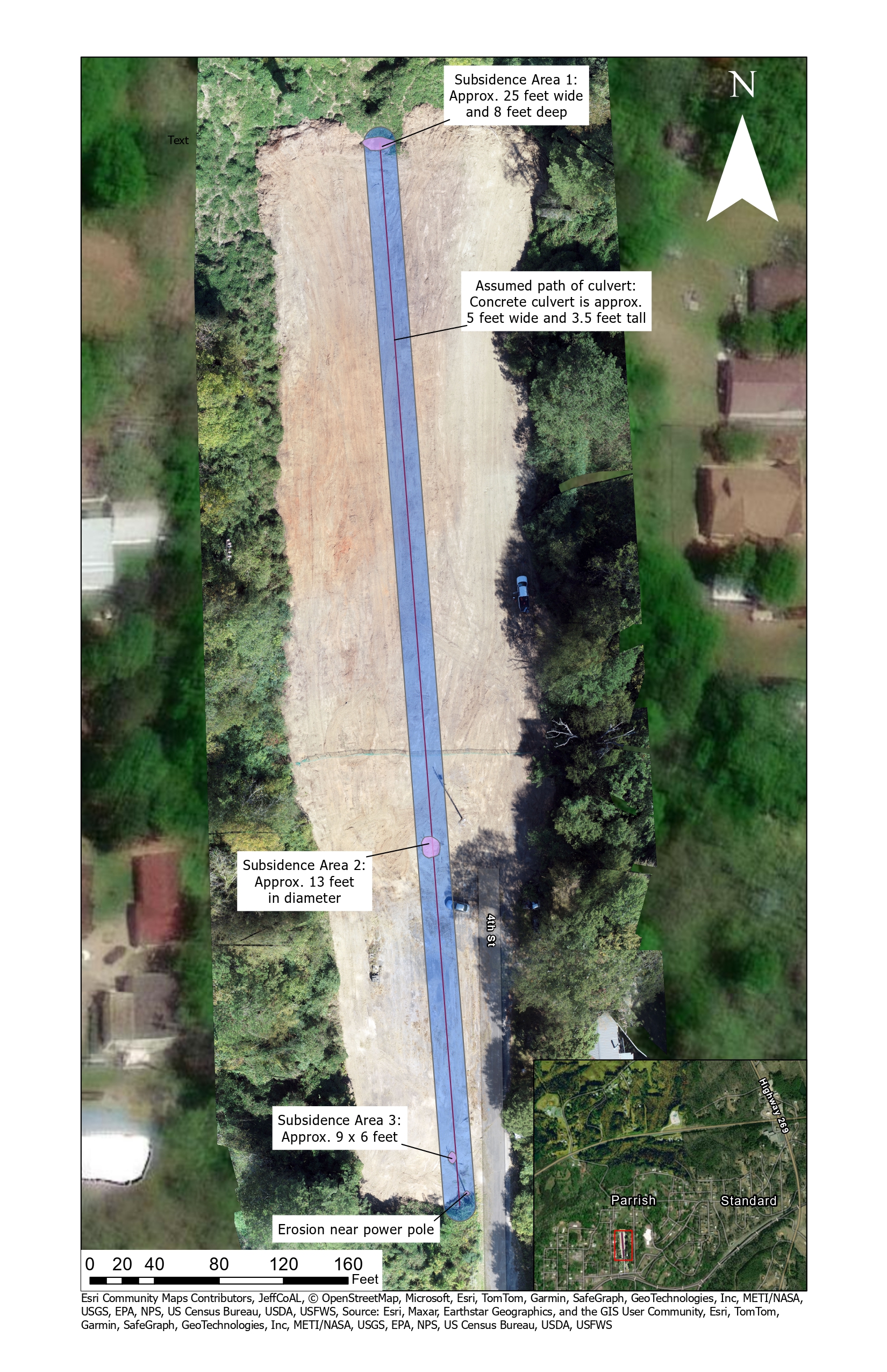 - Culvert Map (Oct 2024) – First GIS-based map identifying culvert route and three major sinkhole zones.
