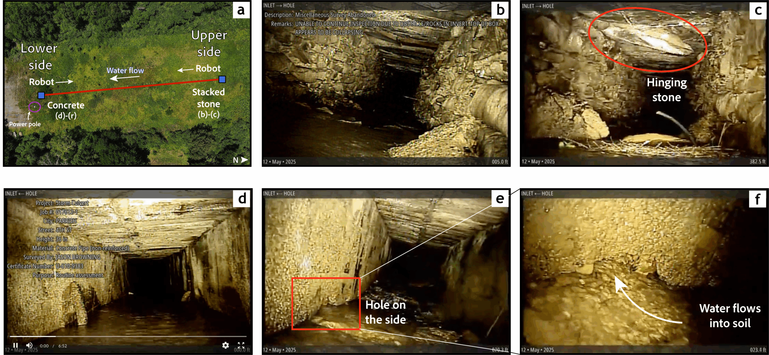 - Robotic Camera Inspection Video (May 2025) – Documentation of internal culvert condition, including stacked-stone and concrete sections, voids, and active erosion pathways.