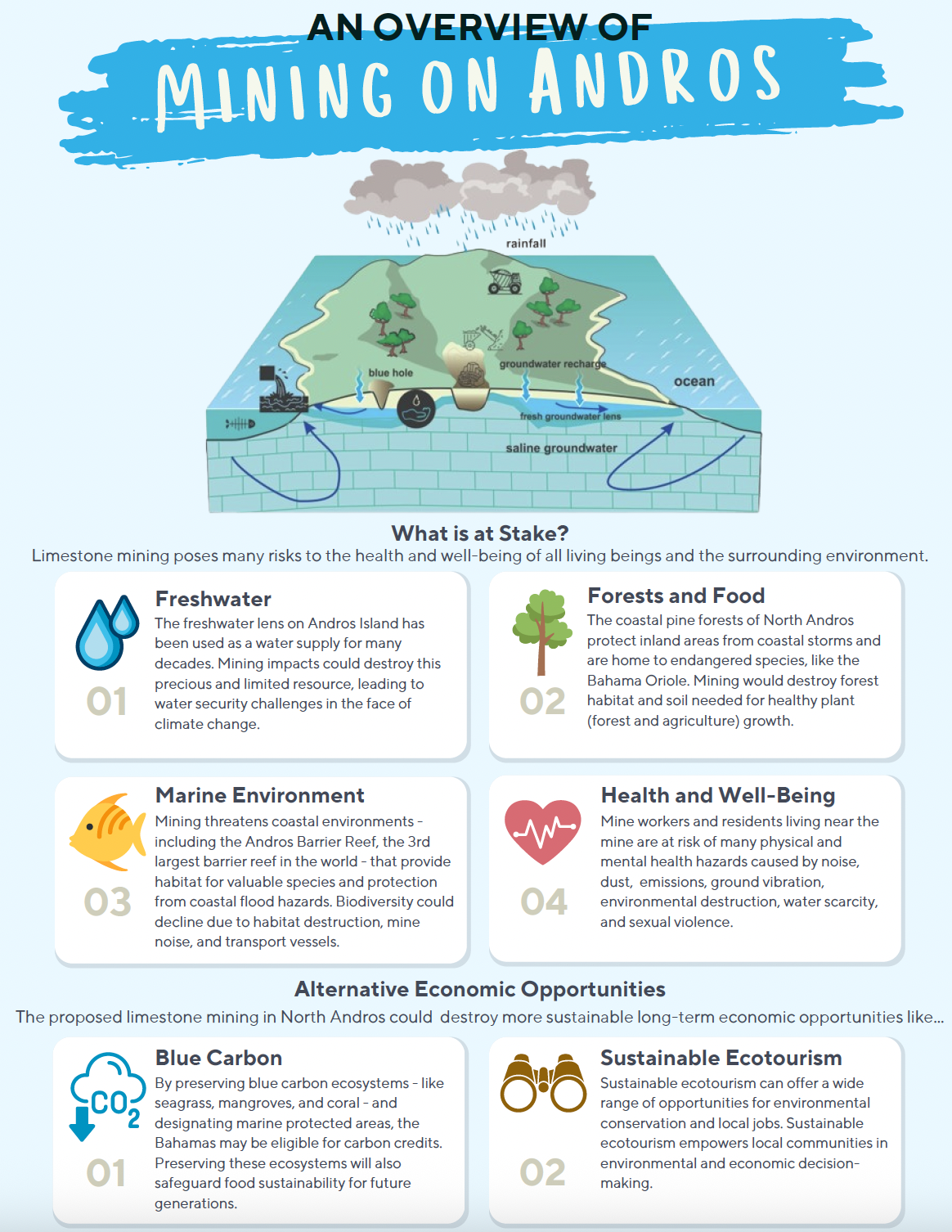 This project seeks to produce a global impact study on the effects of a proposed 5,000-acre strip mine in the Caribbean. This impact study will be presented to the political leadership to inform decision-making on the proposed mine moving forward.