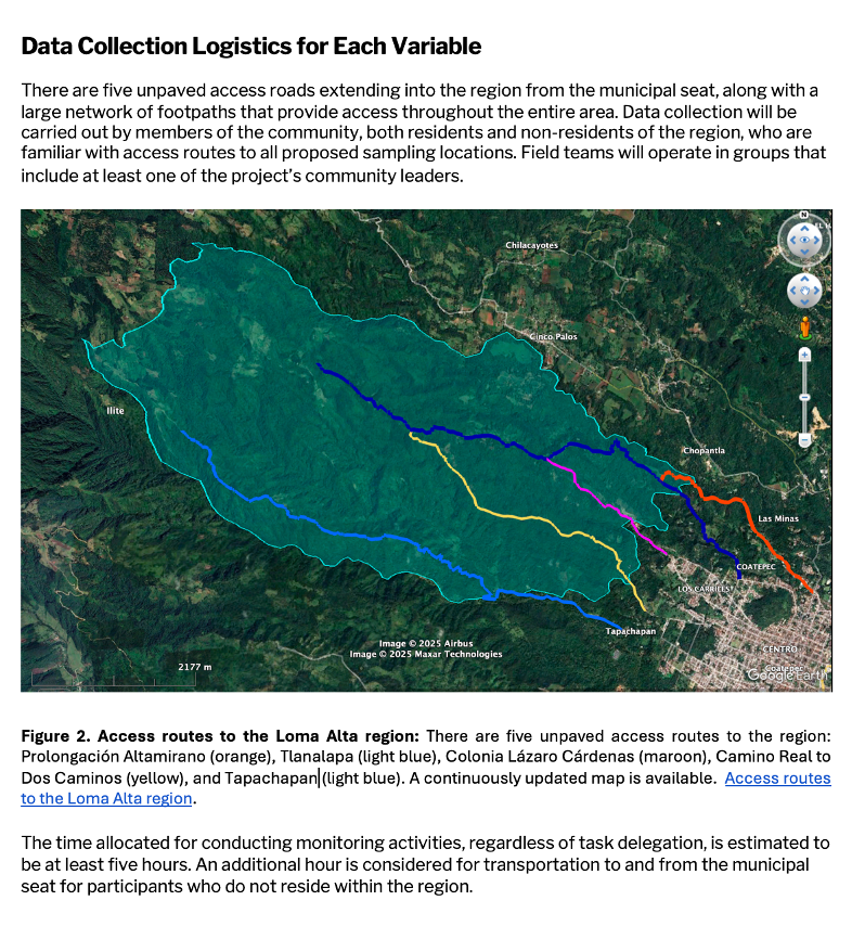 The Loma Alta region has exceptional natural richness and has been a pioneer in conservation strategies, but it is currently threatened by the expansion of intensive agriculture and land tenure conflicts. These pressures have, in turn, strengthened cohesion among community members. The community recognizes the value of this territory and uses it to confront these challenges; however, having a solid database that documents its natural and cultural value would greatly strengthen these efforts. Maintaining reliable, continuously monitored data on how this socio-ecological system functions, and on the environmental services it provides, will enable better decision-making and a stronger response to current threats. This project focuses on developing that database and creating a platform that allows the community to easily access the information. We are seeking an expert to help us build an efficient database and an accessible system for community use.